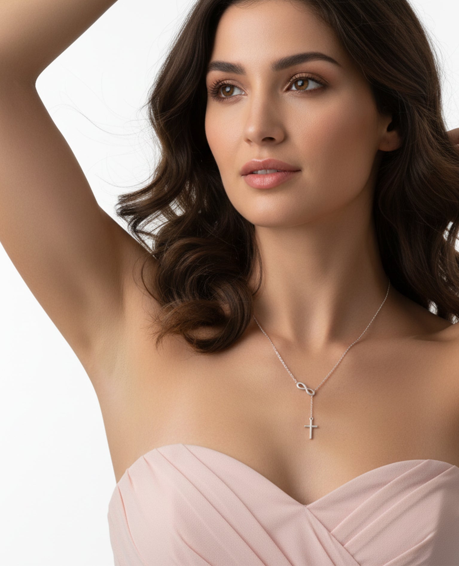 925 Sterling Silver Necklace with a Cross inside a Heart Cubic Zirconia's Pendant