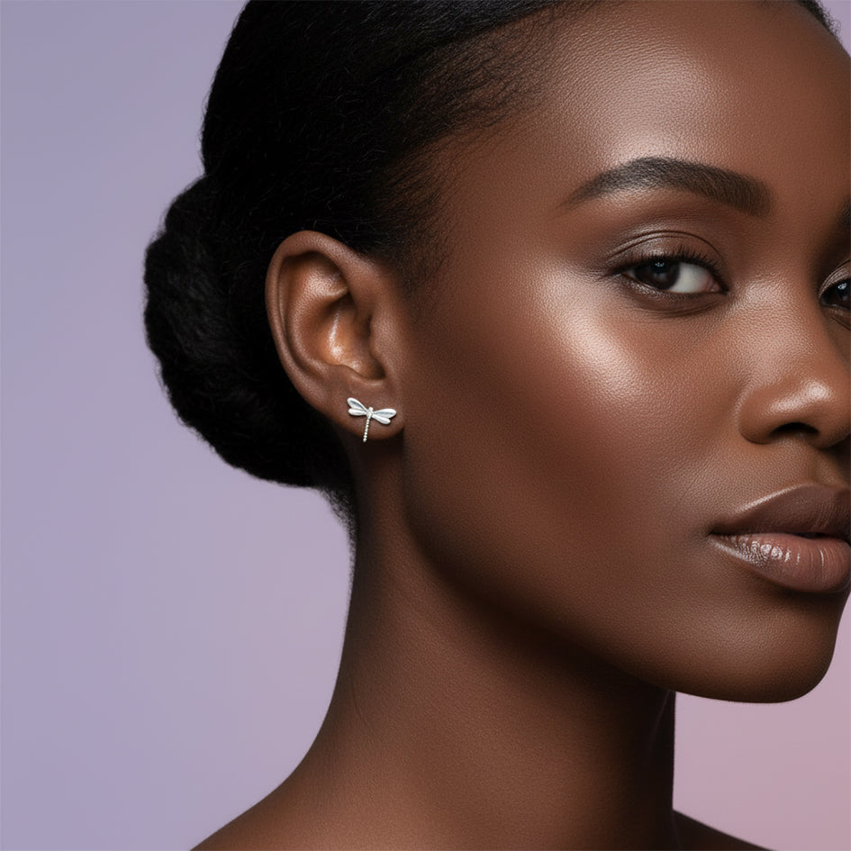 925 Sterling Silver Dragonfly Med Stud Earrings