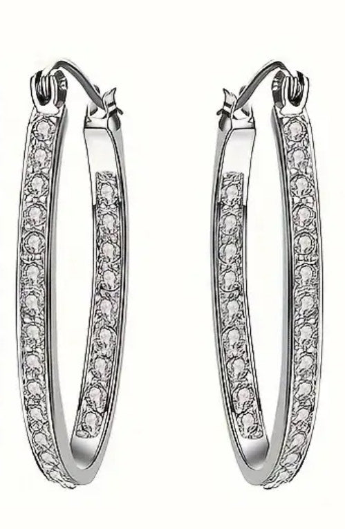 925 Sterling Silver Oval Hoop Earrings with Cubic Zirconia's