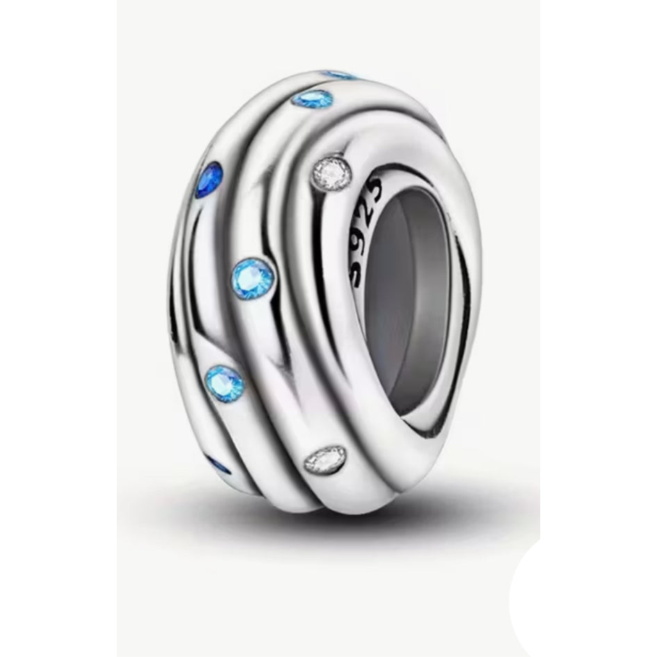 925 Sterling Silver Water Ripples Stopper with Blue Cubic Zirconia's